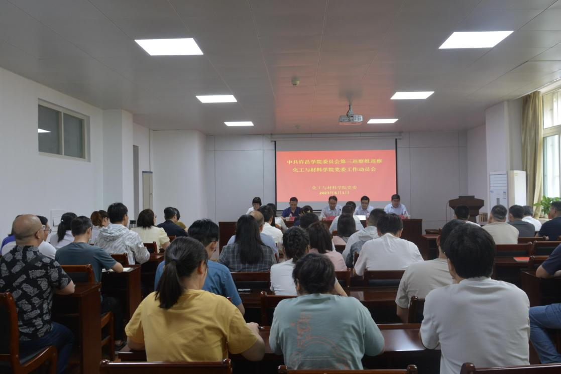 2023年6月1日上午,校党委第巡察组巡察化工与材料学院党委工作动员会在化材S302报告厅召开。校党委第巡察组组长高凯,副组长郗磊磊、陈化宇,成员吕欣、田俊萍、姜萌出席会议。全体院领导班子成员、科级干部、党支部书记、博士教师、无党派和民主党派教师代表、学生代表参加会议。会议由我院党委书记许志红主持。